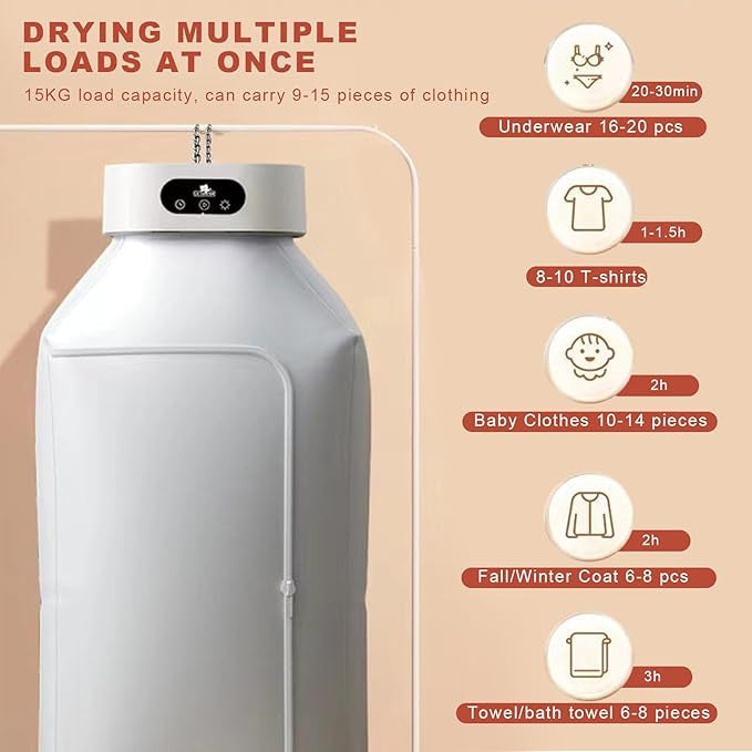 - Rapid Warming Efficiency: This clothes Warmer machine quickly dries up to 9 garments in just 20 minutes, using advanced technology to efficiently remove moisture via heat and airflow. Ideal for those seeking a swift and effective Warming solution.
