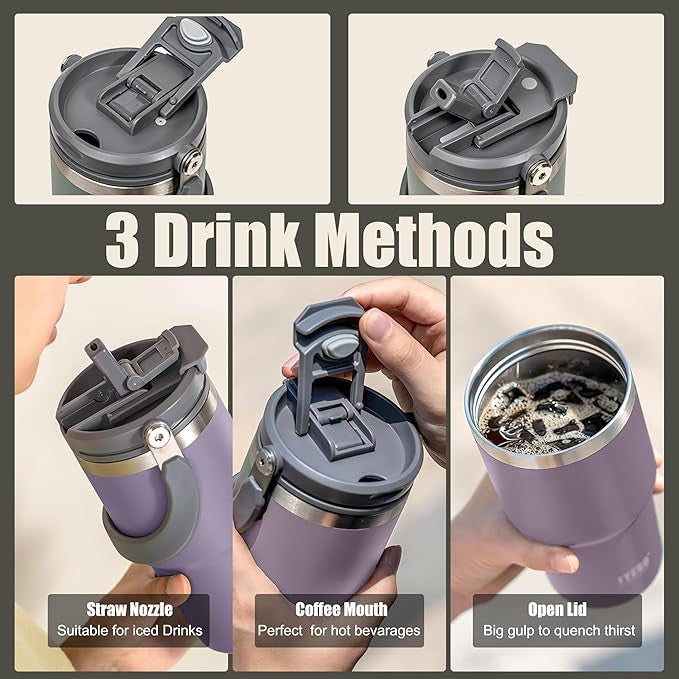 - 2-in-1 Lid Design: This unique designed lid has 2 flipping opening, which allows you to sip effortless or suck by straw as you wish. Equipped with a sealing ring, it's 100% leak-proof when snap it shut.