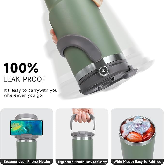 The ergonomically designed carry handle fits the tumbler body and can even be used as a mobile phone holder. It is convenience for you to watch video or TV on traveling or outdoor.