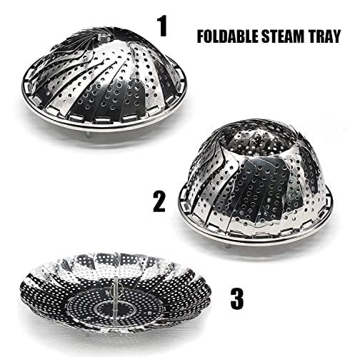 - 【EASY TO CLEAN】Just rinse off after use, also dishwasher safe making it easy and faster to clean. The steamer basket, feet, and handle are folded for easy storage in cabinet.