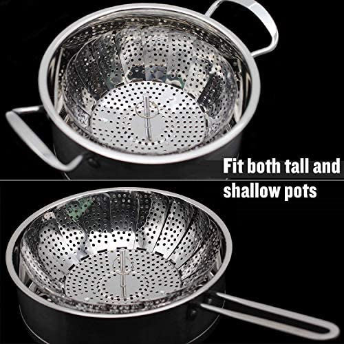 - 【HIGH QUALITY】The vegetable steamer basket is made of food grade stainless steel, which is rustproof, harmless and durable. Steaming is a healthy cooking choice because it helps retain more than 90% of the nutrients lost when boiling.